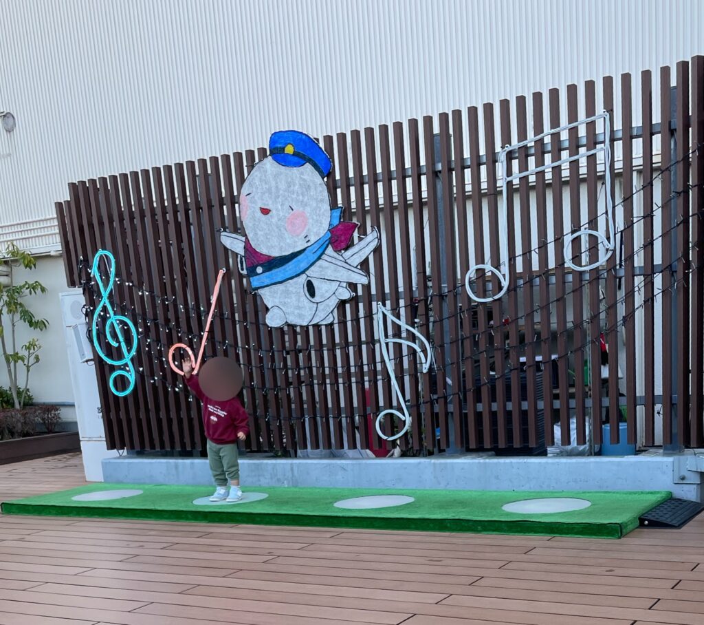 伊丹空港の展望デッキで体を動かし、